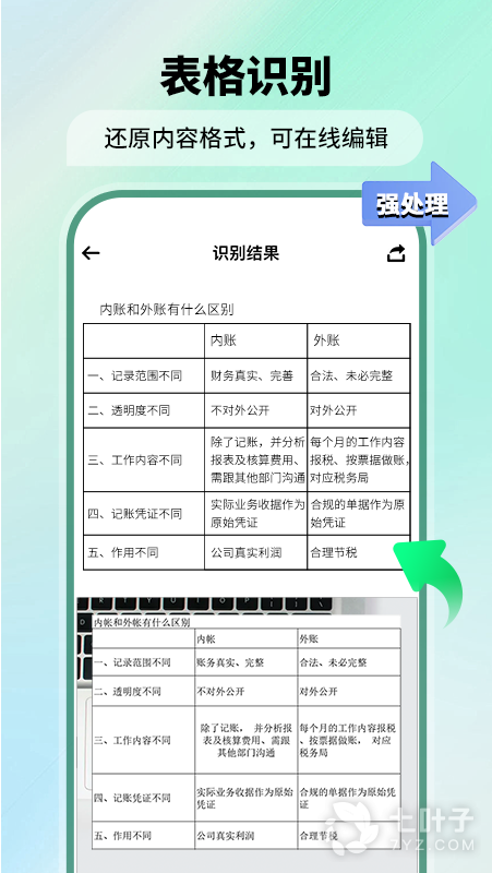 *支持表格、表单识别,定位表格数据,智能解析表格文字,快速生成Excel表格,可编辑并保存为表格或图片。