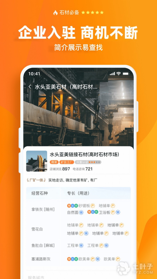 2、优质采购,功能全面:对于石材的采购模式,软件中开发了非常全面的功能,包括本地以及外地整合发布,囊括非常全面