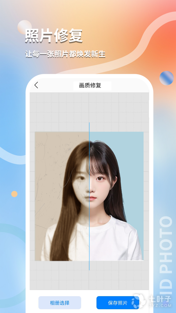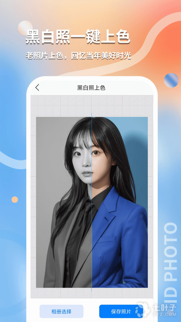 2、最美随身证件照轻松拍摄证件照,通过一键抠图,可以对证件照的背景进行更换,非常简单。拥有各种的证件照尺寸选择,按照自身需求去使用。支持对黑白照片进行上色,使得老照片换发不一样的色彩,重温当年的美好时刻