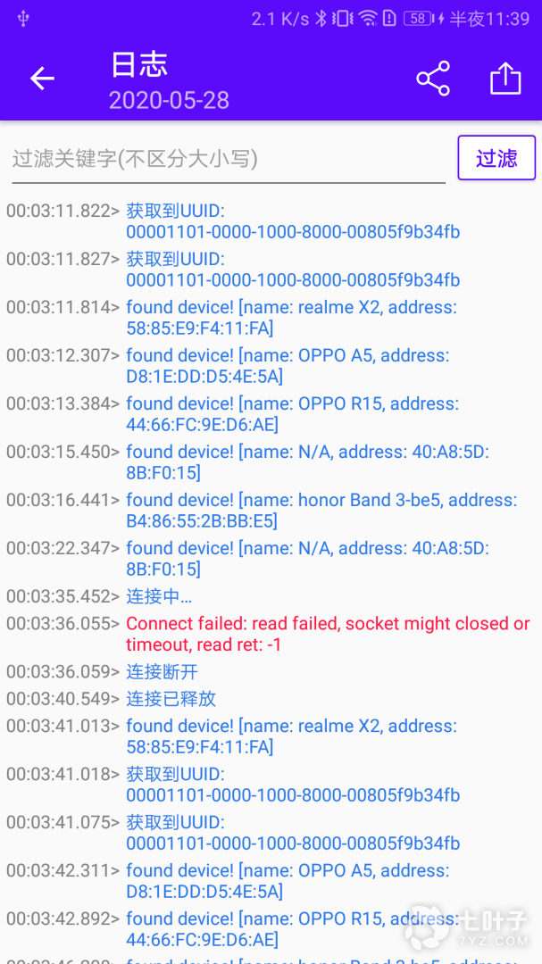 2. 支持根据设备名称、MAC地址、信息强度、是否已收藏等条件过滤搜索结果。