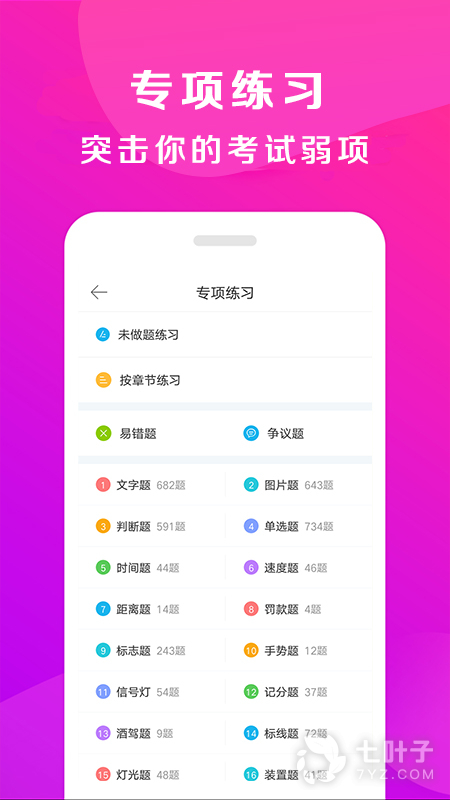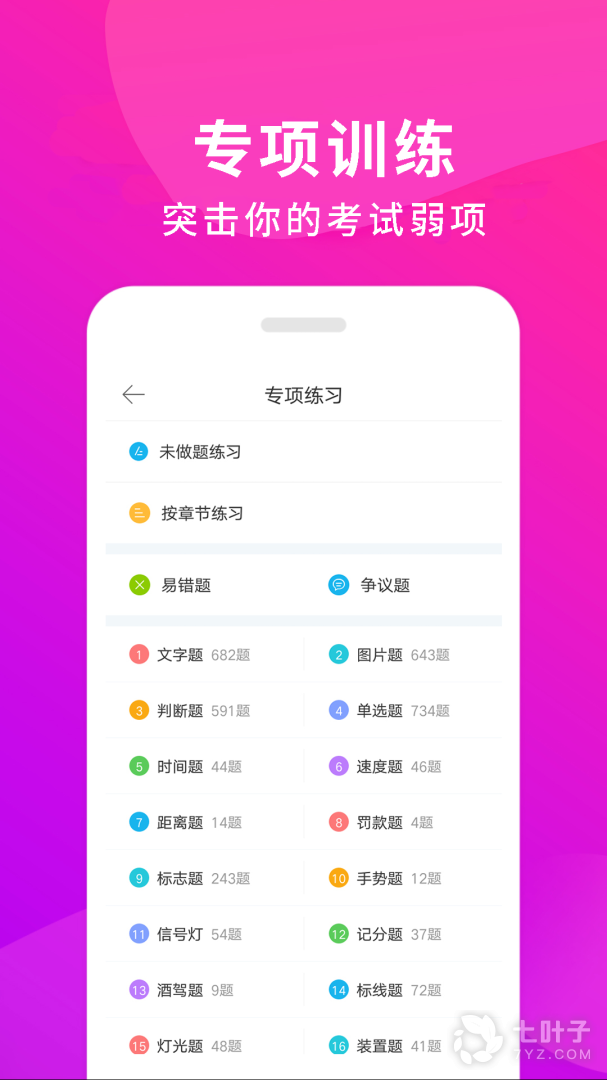 4、分类学习: 题目分门别类,每类选择题与判断题可随时切换
