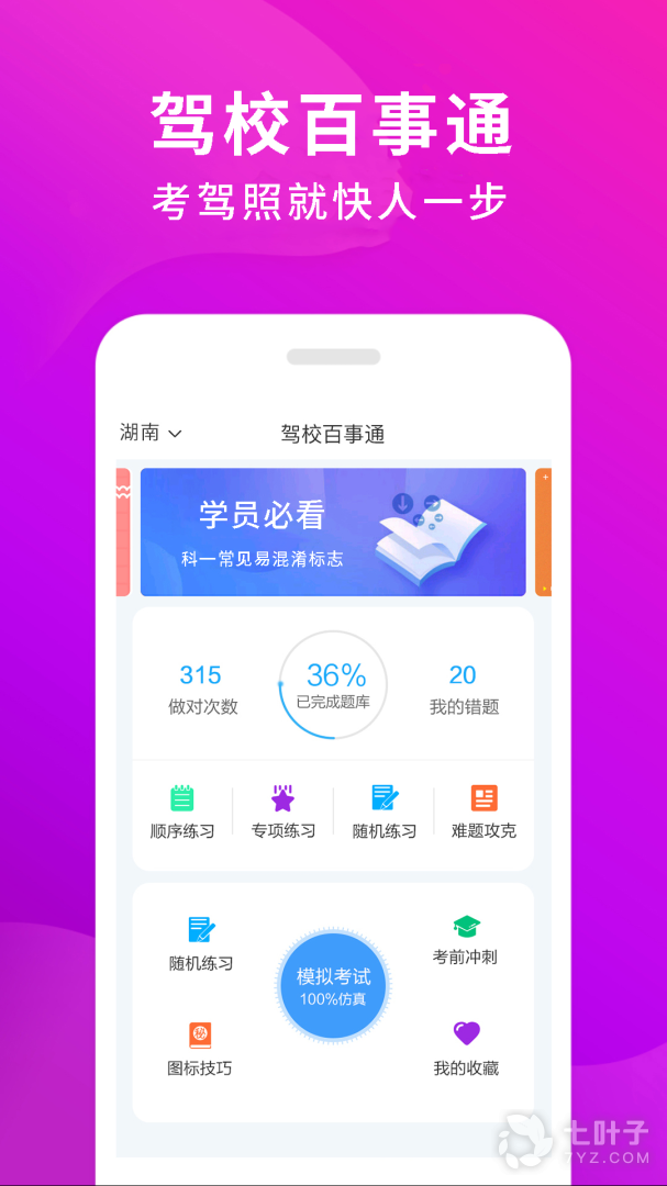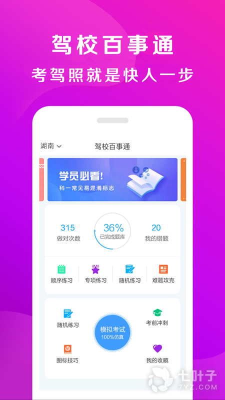 驾校百事通驾校指定app,全新考试试题,方便学员系统性、全面性的学习,切实帮助学员提高成绩顺利通过考试拿到驾驶证。