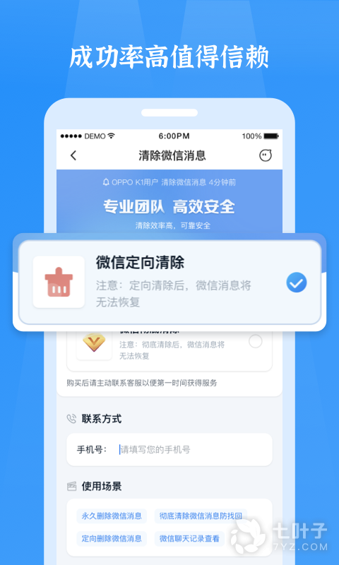 支持指定数据删除,彻底从手机中除去,保护用户隐私;