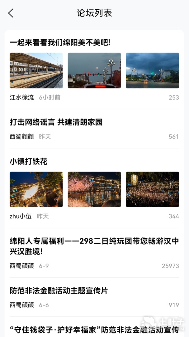 3、在这里可以看到各种的本地相关资讯,用户可以看到各种新闻资讯、政策法规、规划整改等信息。涵盖绵阳车友会,亲子乐园,霸王餐美食等,以及各种线上线下活动。本地市民和外来的朋友都可以通过它很好地了解绵阳