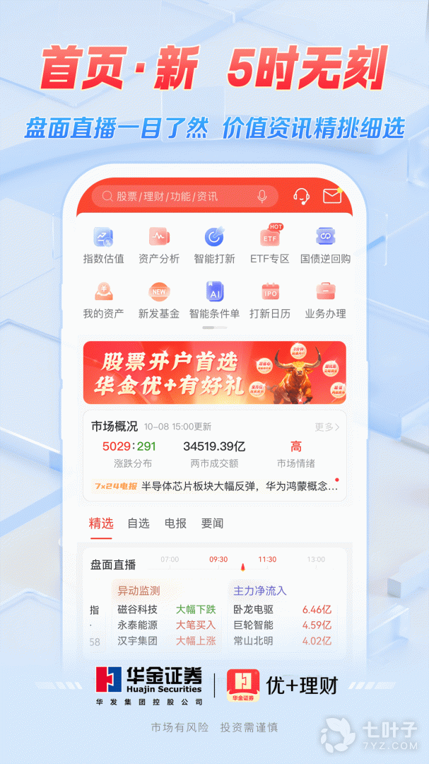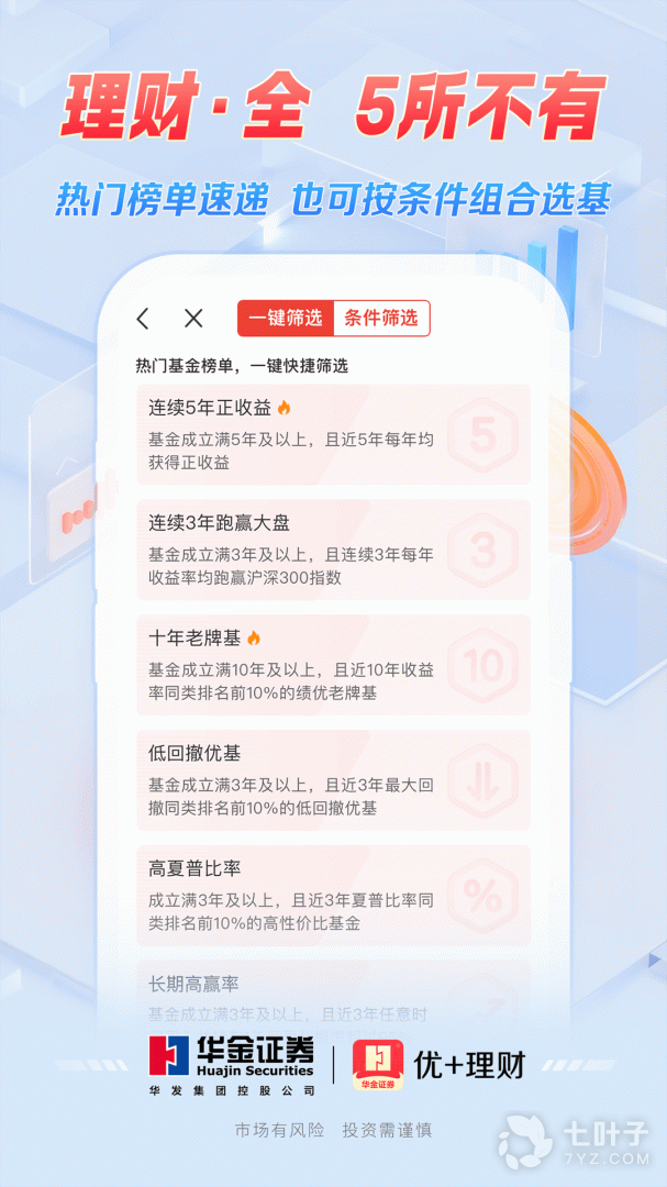优+理财是华金证券互联网金融综合服务平台,集证券开户、行情交易、业务办理等功能为一体,致力于为广大投资者提供更加方便快捷、安全优质的综合理财服务。