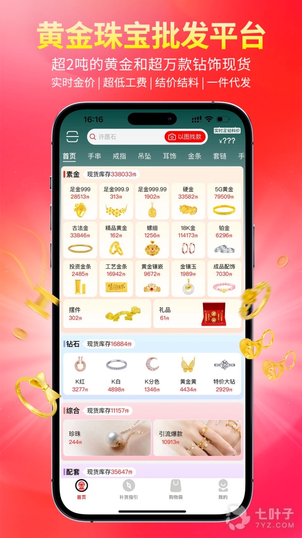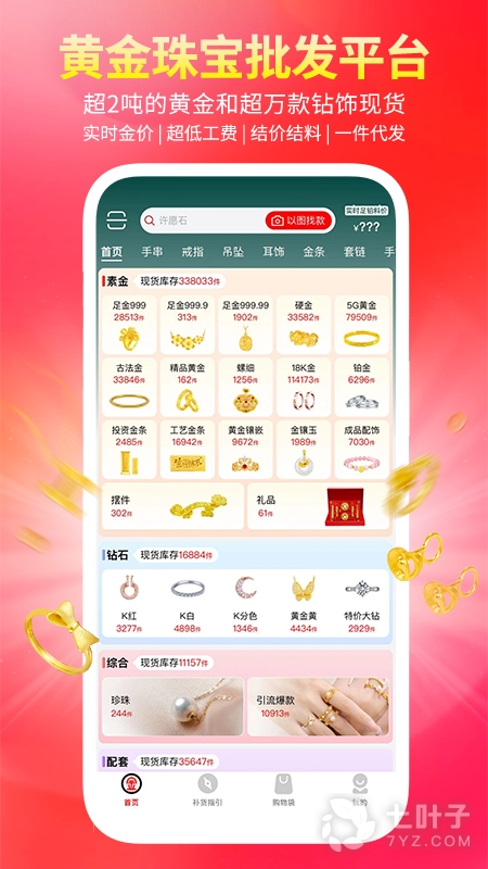 3、汇聚上万款精品金饰,一件即发极速送货上门,质量有保障价格更透明。找金APP去掉繁琐的出货流程,一件下单即时出货,成为批发商还能尊享更多优惠