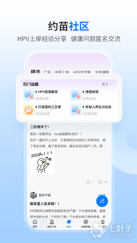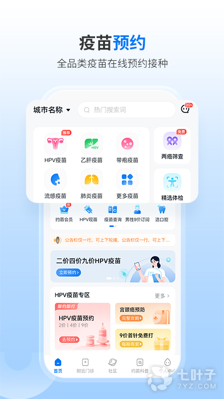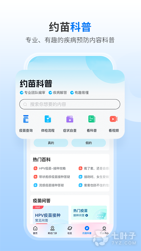 约苗官方软件以疫苗预约接种为核心,集成疾病防控信息、疫苗接种服务、"宫颈癌&乳腺癌"筛查与门诊主页等各项功能。约苗为用户提供专业、全面的疾病预防信息服务。