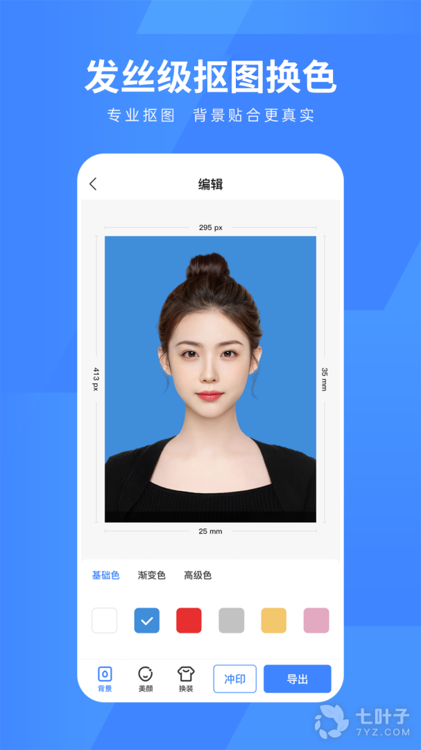 3、一键更换背景色,多背景色随意切换,满足不同证件照的要求