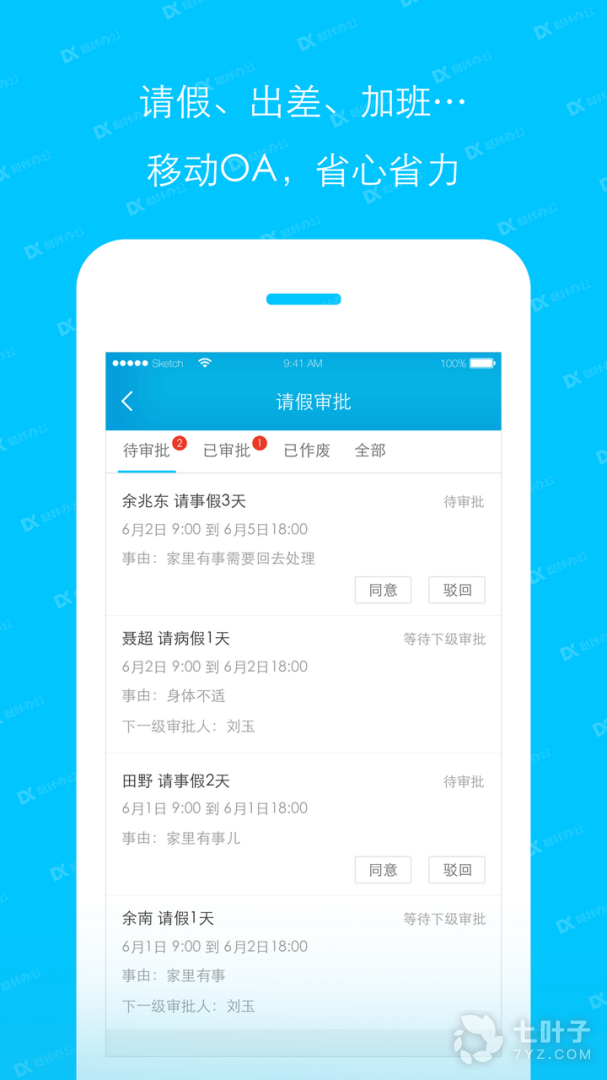 3、及时的获取审批信息,在app中就能让管理人员快速进行审批操作了