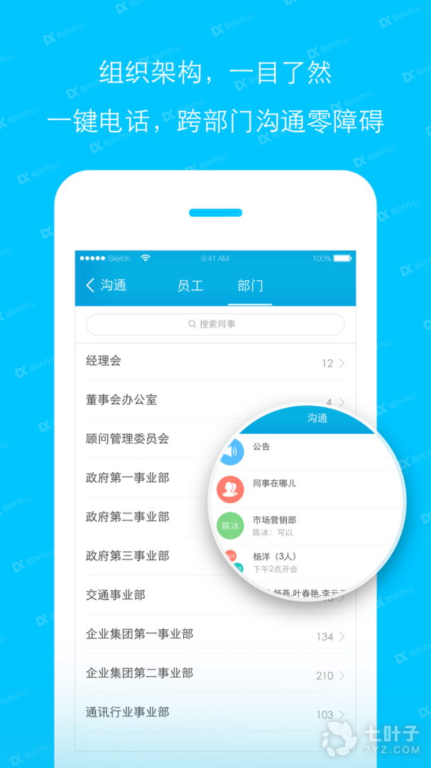 3、沟通:消息通知、公告、同事在哪儿、通讯录。