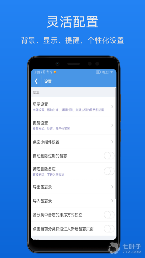 高效备忘录是一款非常受欢迎的备忘记事应用,支持定时提醒,可设置登录密码,支持网络备份和还原。
