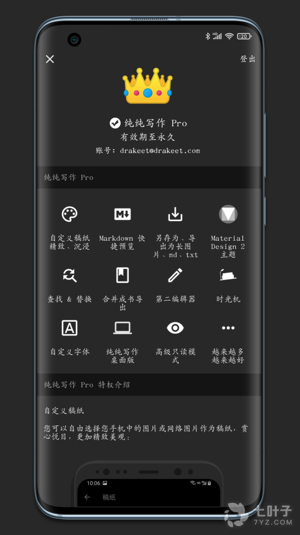 3、可以更换稿纸即背景颜色,保存纯白、默认夜览、巧克力、纯木,还可以自定义更改背景。