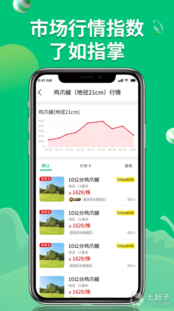 1、价格行情采用折线图的形式表达出来,直观明了的了解到花木的行情