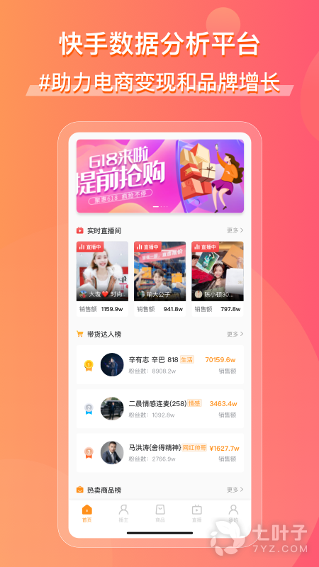 为用户提供热门快手达人、直播、商品和视频类等多维度数据服务,帮助用户实现账号涨粉、电商变现和品牌增长。