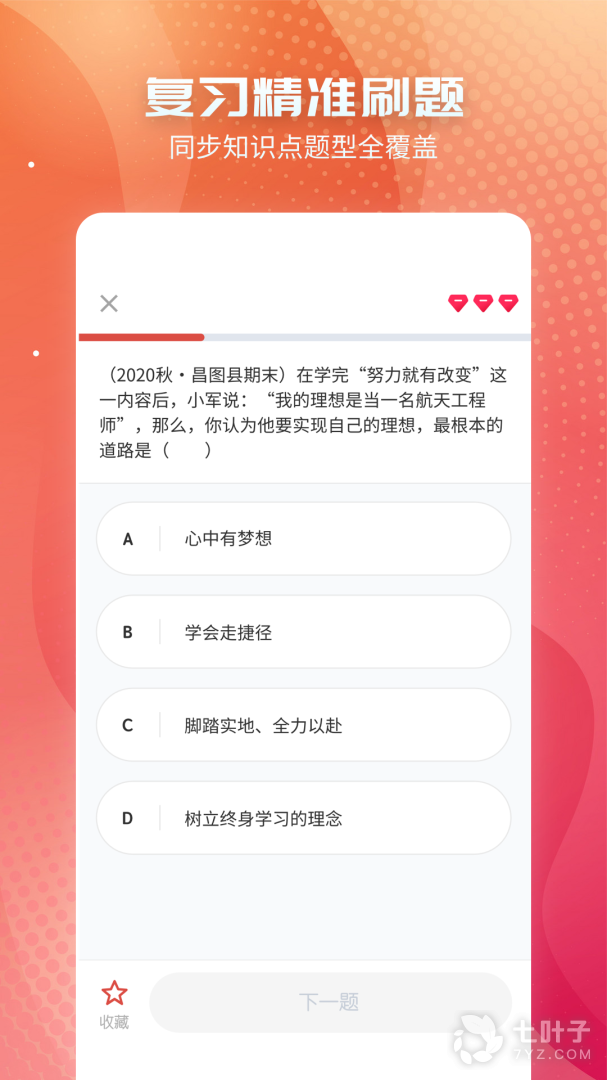 2、初中政治是针对中考政治科目打造的学习软件,覆盖的政治难点知识很全面,真题、模拟题、错题都有详细的划分,对于每个知识难点都有些全面的解析,学生可以针对性来学习提升