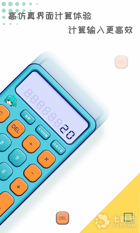 二次元风格绝对让二次元爱好者爱不释手,精美的手机操作界面设计,封面配有可爱的动漫人物,超级仿真的计算界面,让用户可以感受最舒适的指间体验,强大的计算功能让计算更高效,并且这款计算软件还支持多种科学运算。