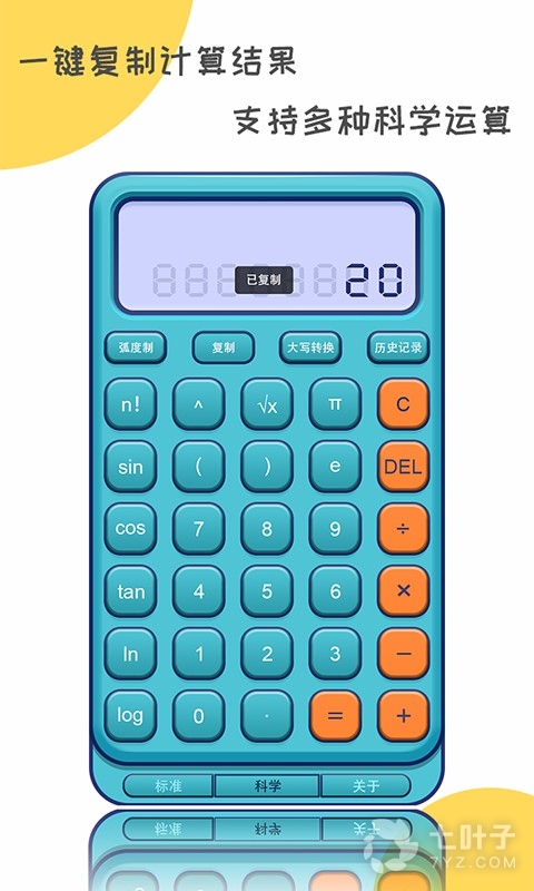 2、计算出的答案可以一键复制下来,并且它支持多种科学运算。这款软件单从设计风格上就已经让人爱不释手了