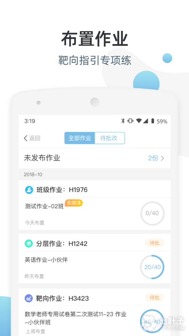 2、在线布置作业、批改作业,考试后学生还能通过优师端查询分数,老师、学生都能选择使用