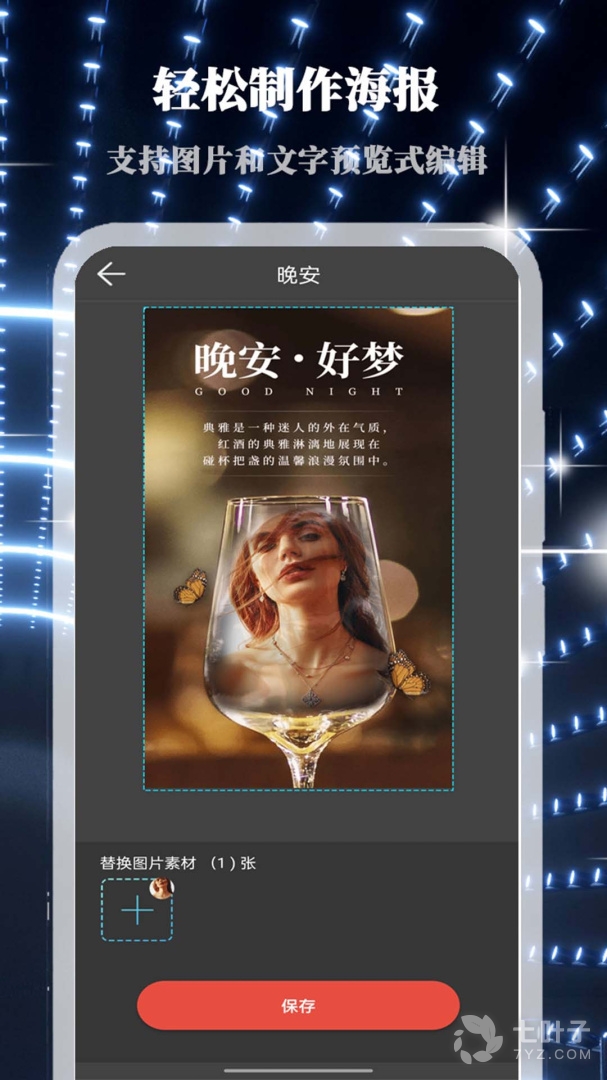 6、图形制作更简单,各种图形和背景,配上心情文字,一秒就能做出明信片