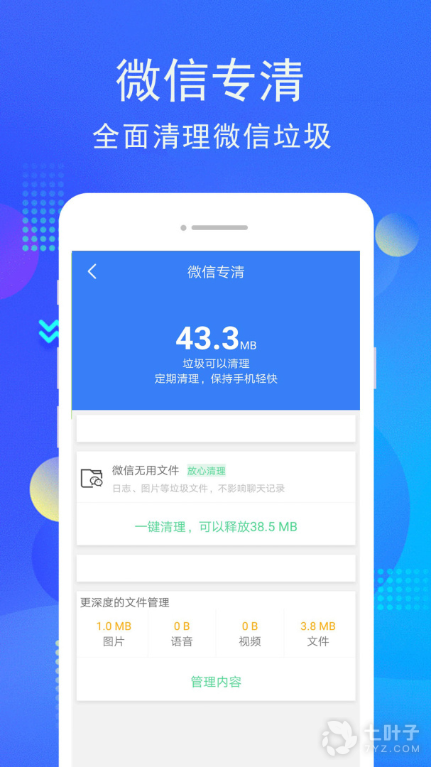 1、专业微信缓存垃圾清理,聊天更顺畅,一键释放更多空间