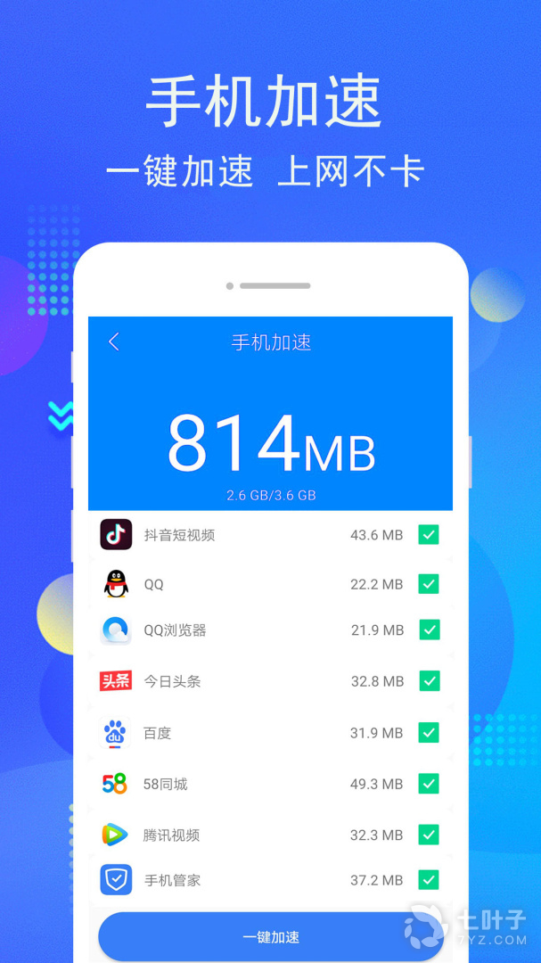 3、清理无用进程,降低内存使用,清除卡顿,一键提高手机运行速度
