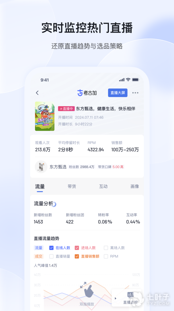 2、考古加是非常专业的电商数据分析软件,对于现在热门的抖音直播来说,这个软件是非常实用的,能够为用户更好的分析带货情况,打造热门爆款带货商品,还能充分挖掘到优秀的带货主播,感兴趣的话就不要错过啦