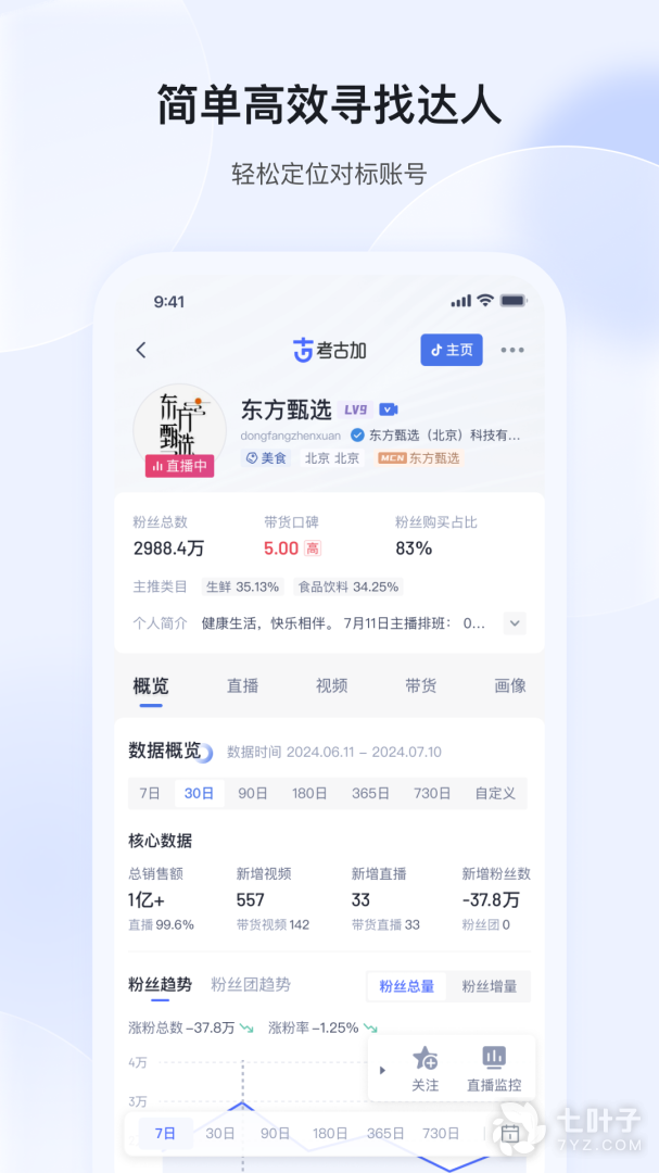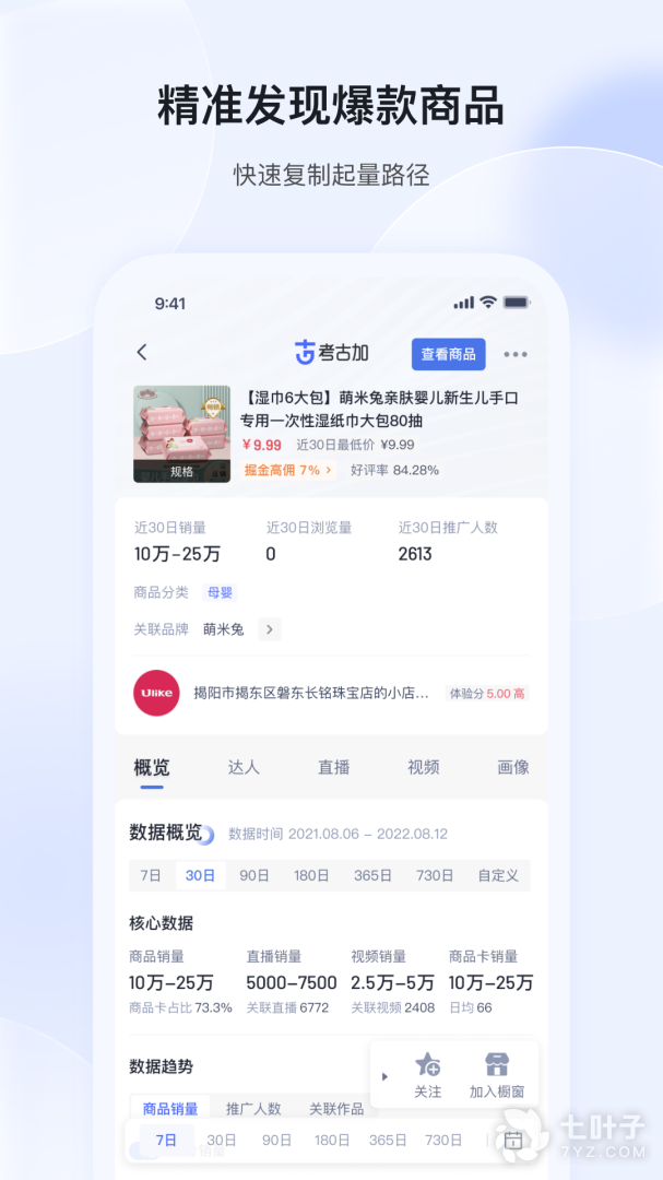 考古加APP是抖音直播短视频电商带货必备数据分析工具,基于行业领先的数据处理能力秉承“ 考古家 ”精神