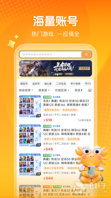 1、螃蟹账号代售,值得信赖的账号代售平台,为喜欢玩机的用户们准备,线上的服务和更新都是大家需要的,平台上能够找到的都是权威的使用,所有的功能都是可以清楚看到的,为所有人带来福利