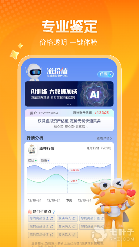 账号免费估值,涵盖原神,天刀手游等多款热门游戏估价,客服一对一估价服务,帮您快速定价!