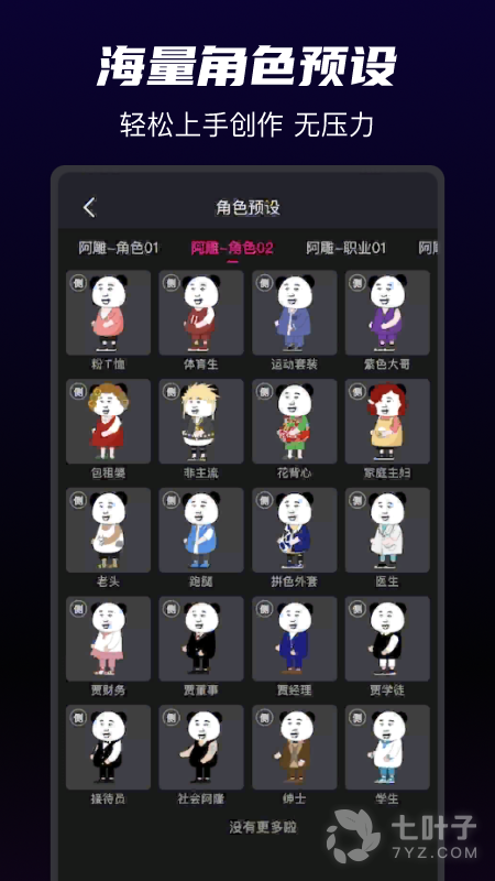 4、提供了丰富的角色预设,在创作的时候更加轻松