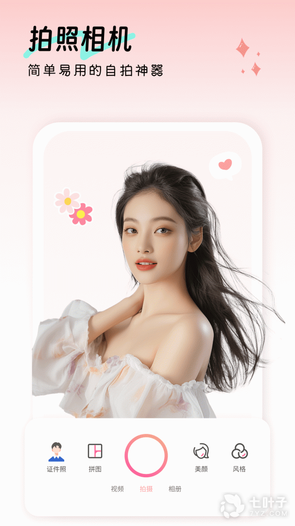 2、深受众多女生喜爱的美颜相机,内置众多的美颜素材,拥有包括磨皮、瘦脸