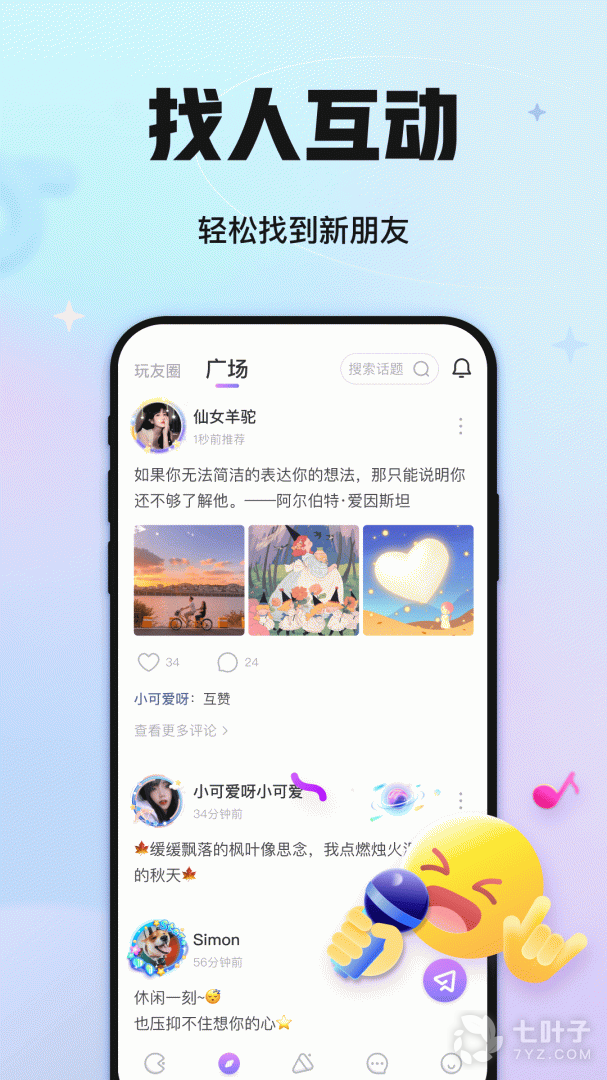 2、动态广场关注兴趣话题,分享精彩瞬间
