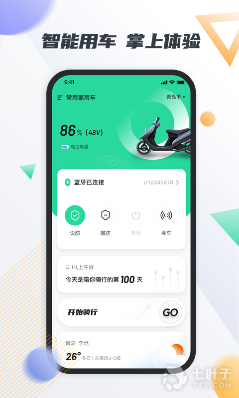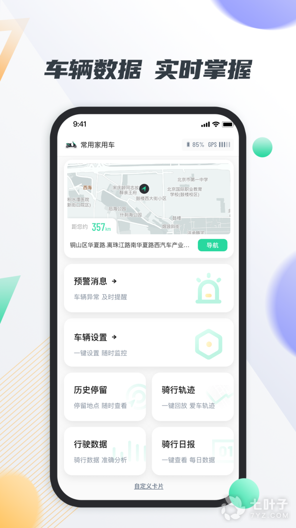 2、共享电动车服务平台,软件中提供电动车租赁,开启定位查看附近站点,低碳出行让用户出行更方便更轻松;添加爱车实时管理,还能查看骑车记录