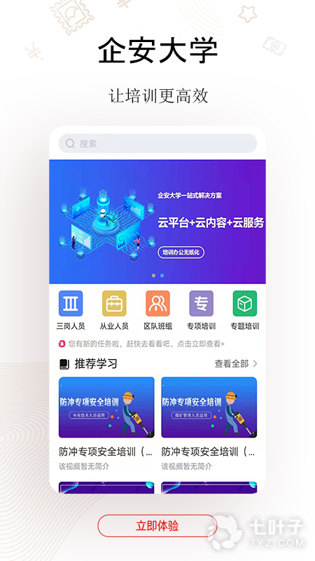 2、致力于为各家企业提供优质的员工培训服务课程,让企业拥有更多的高端人才。软件只要面向培训重工生产企业和轻工企业的员工进行安全生产培训,通过线上和线下相结合的学习方式来提高员工的专业水平,学习更多的职业技能,为企业带来更好的工作效益