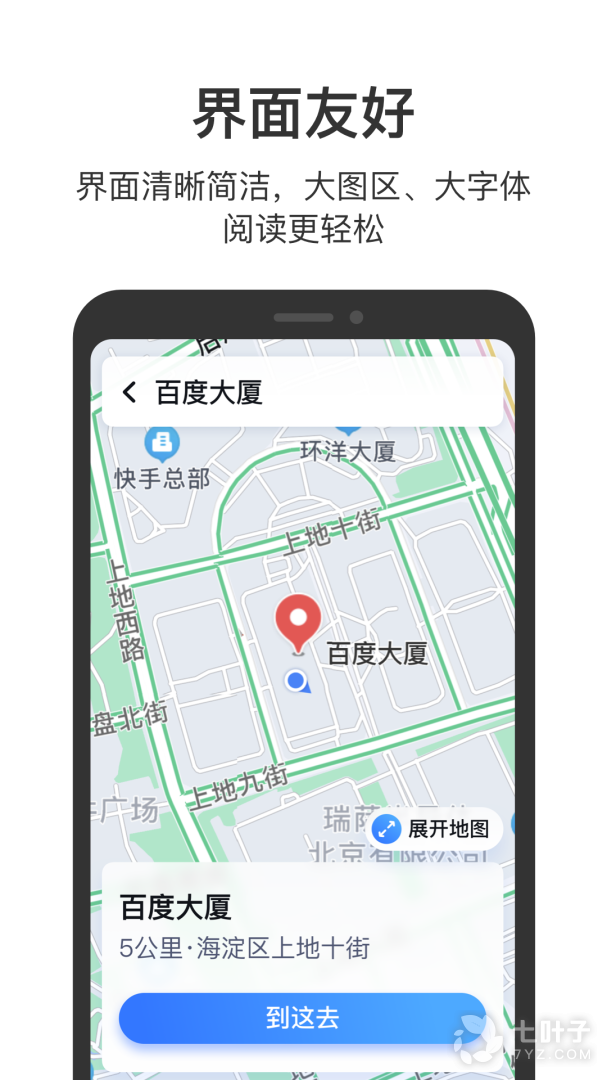 1、专门为中老年人打造的手机地图软件,百度地图关怀版所有文字的显示都是大字,显示非常的清晰,使用起来十分的方便,操作上手很快