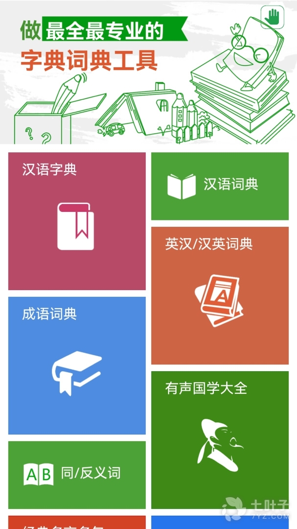 包含了汉语字典、汉语词典、英汉小词典、成语词典、同义词和反义词、古文文言文、有声国学大全,经典歇后语,脑筋急转、绕口令、名言名句等10多大版块。