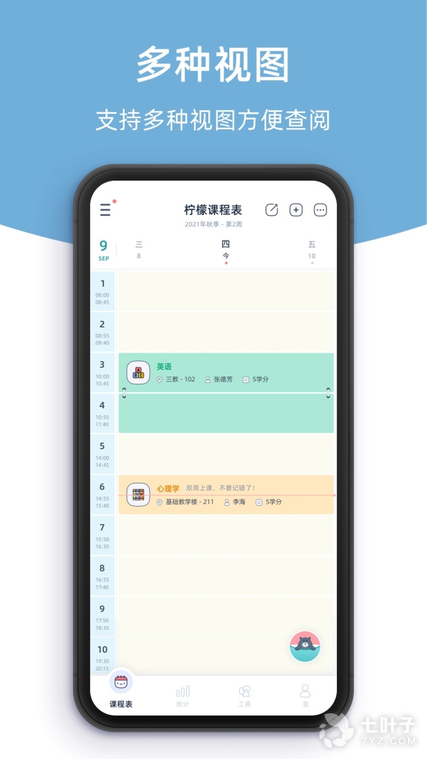 3、该软件设计精美,可帮助您记录所需课程的时间、地点和科目,从而使您的学习更有计划
