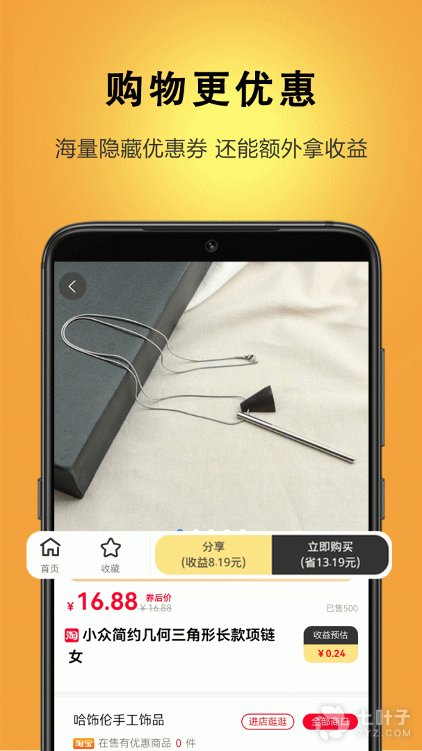 1、购物先领券更加优惠,将优惠商品分享给好友购买后,还可以获得佣金,轻松赚钱