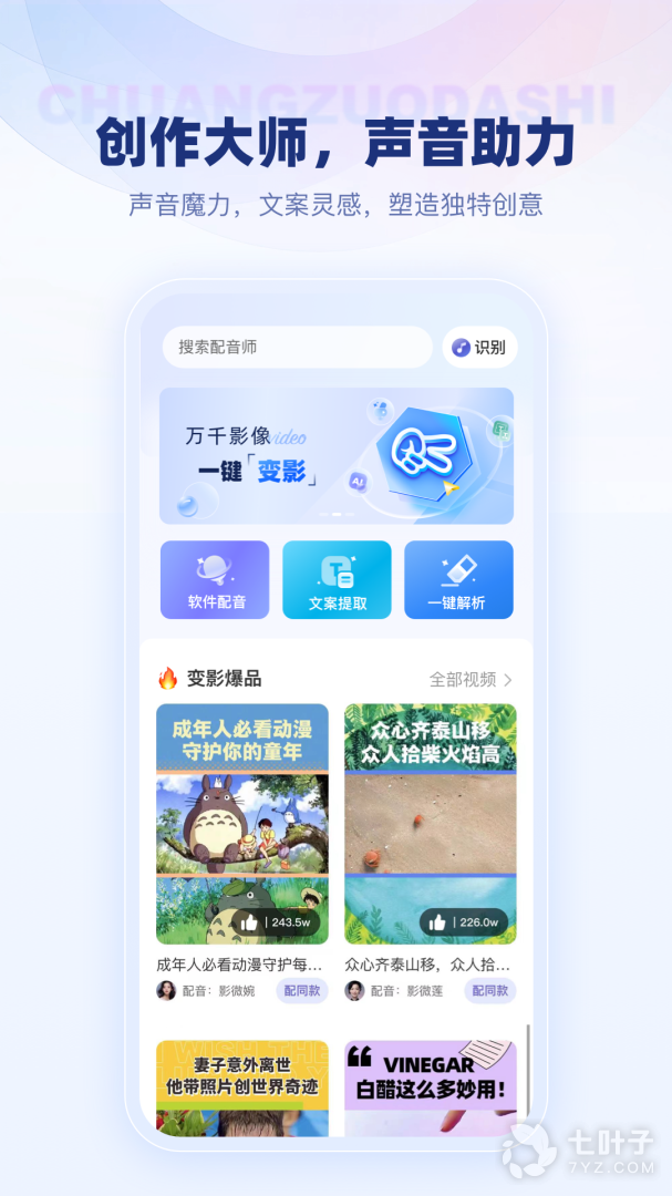 变影,一个专注于剪辑配音的智能创作工具。为创作者解决繁琐的文案工作和配音等问题,让创作一键变得更轻松、更专业。无论您是初学者还是经验人士,我们希望每位用户都能够通过我们的产品高效、优质地完成创作,更好地表达自己的创意和想法,让每一次创作都充满个性和魅力。