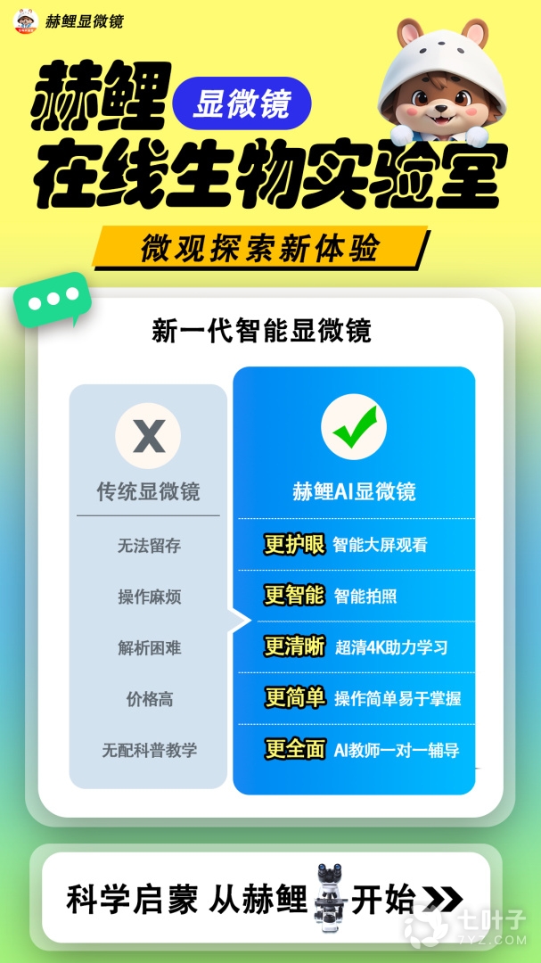 “赫鲤(heli)”是一个创新的元宇宙显微镜实验室,提供了全新的课外学习方式。您可以随时通过手机登录,进入专属的显微镜实验室,学习前沿科学知识,探索微观生物。