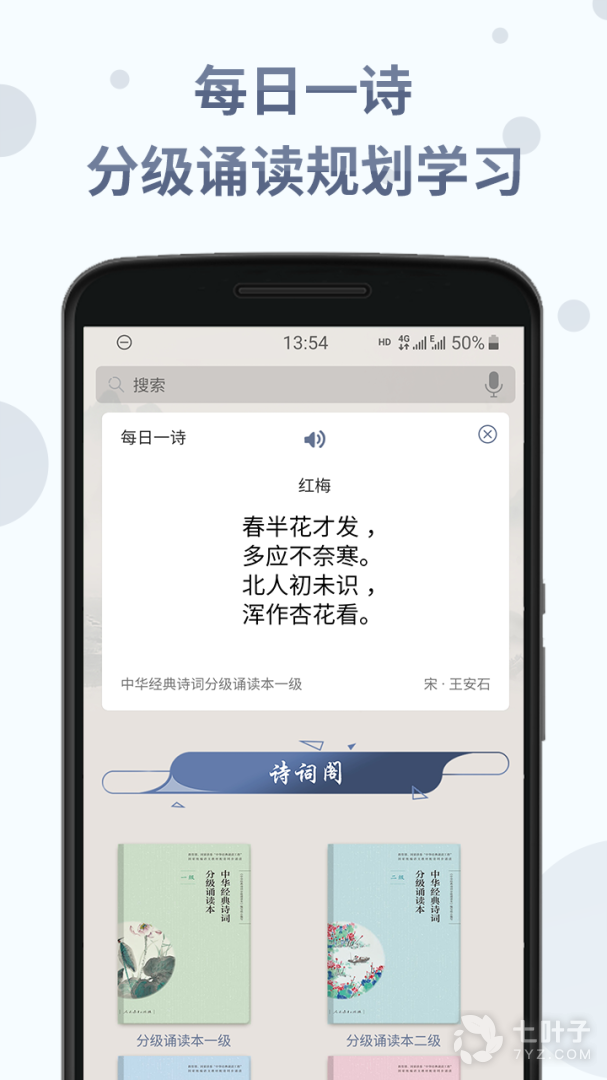 2、国家统编语文教材配套同步诵读的中华经典诵读工程手机端软件,用户可以在这里阅览学习到更多的古诗词文学作品,支持详细的解释,同步中小学教材,需要的可以下载诗词分级诵读app使用