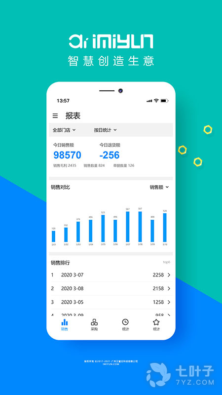 2、门店管理,可实时在线管理门店,并能实时了解门店销售业绩
