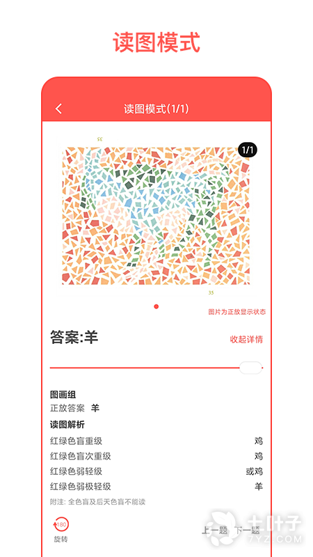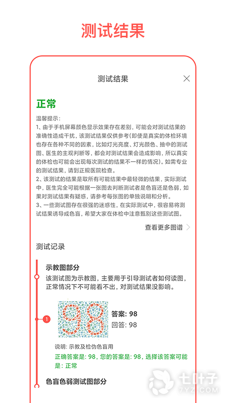 1、色盲自测app是体检色盲图谱学习好帮手,色盲自测app提供常用的色盲测试图谱,帮助你学习图谱,熟悉图谱,认识色盲色弱,轻松过体检