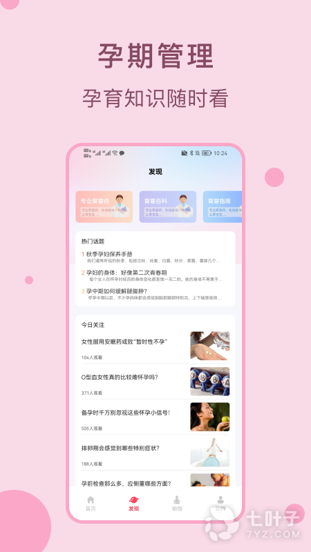 1.孕期每日知识:最贴心最专业的孕期每日知识,教孕妈妈要怎么照顾自己;