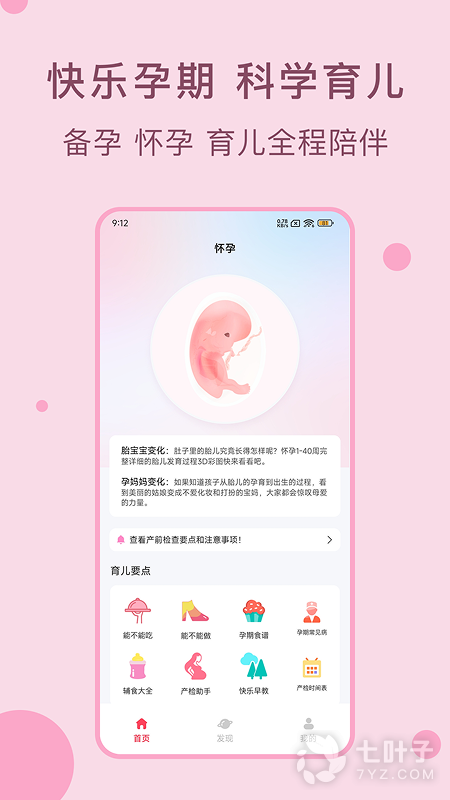 2.胎宝宝变化:通过3D动画演示,了解胎儿从受孕到诞生的全过程,告诉你胎宝宝每一日的变化;
