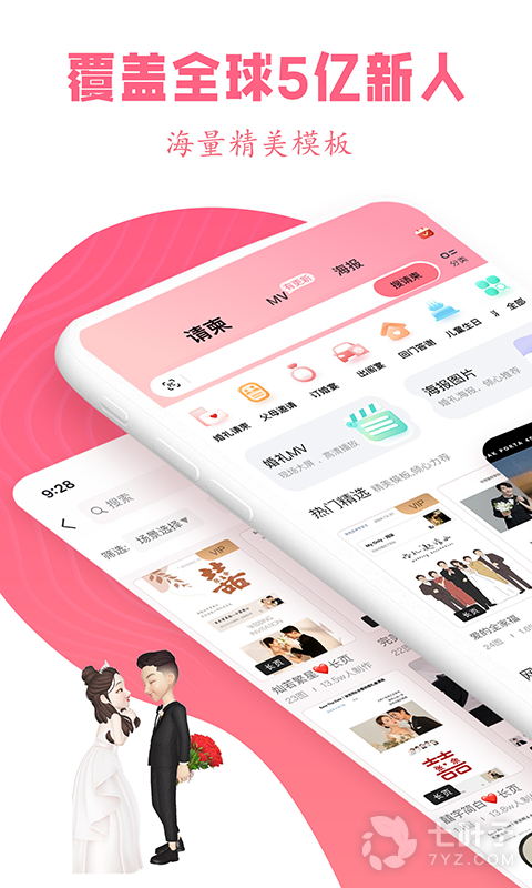 1、喜帖、同学会、生日宴、老人寿宴、乔迁、婚礼纪念等海量APP模板