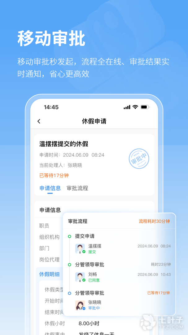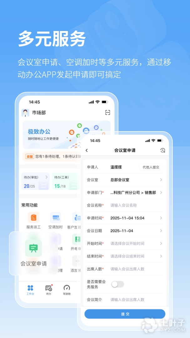 1、主要为公司办公用,行政部门可以通过软件智能化的管理员工,请假,外出,调休等事宜均可从这里操作,还有超多模板可供选择