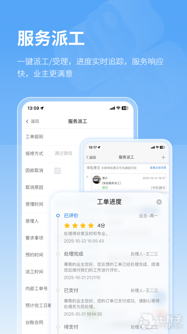 新玩法1:无论是公司老板、管理人员,还是工程师傅、保安大哥或者保洁阿姨都可以通过手机来处理业务审批、服务派工、设备维保和巡检等工作。