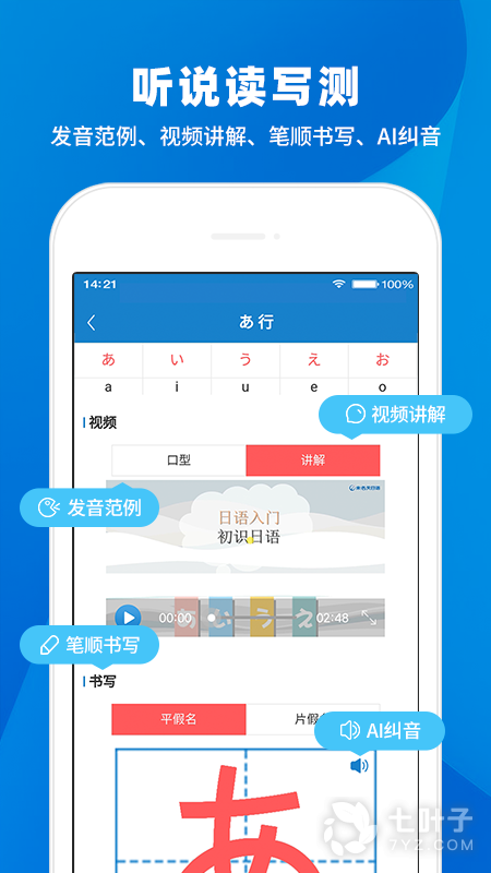 2、学日语不知道怎么发音?真人口型示范,就像面对面的日语私人老师。反复示范,学会为止