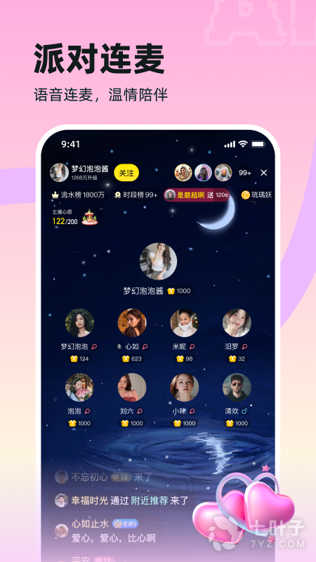提供线上、线下多种泛娱乐约玩及商业服务,包括线下约见、视频聊天、在线点歌、游戏陪玩、声优聊天、闪聊K歌等。